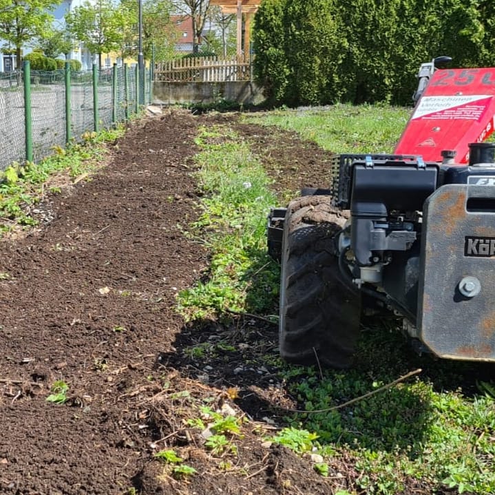 Die Umkehrfräse ist ein Profigerät und für größere Flächen geeignet. Die Bodenfräse fräst den Boden um, arbeitet die groben Erdbrocken unten in die Erde ein und schmeißt die feine Erde als oberste Schicht auf den Boden. Somit wird ein fertiges Bodenplanie-Ergebnis erzielt und es kann sofort angesät werden, ohne die Fläche nach dem Fräsen noch herrichten zu müssen. Die Umkehrfräse ist nur für Erde und nicht für Kies geeignet.