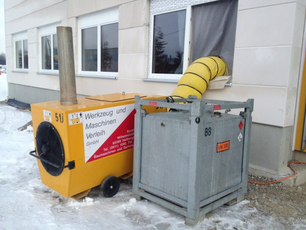 Das Ölheizgerät ist zum Heizen von großen Räumlichkeiten geeignet. Der Lufterhitzer verfügt über eine integrierte Abgasführung und bläst die Warmluft über Warmluftschläuche in das Gebäude. Der Ölheizer ist für geschlossene Räume geeignet, und kommt überwiegend bei Festzelten und Hallen zum Einsatz. Die Ölheizgeräte mit 110 KW Heizleistung sind sehr gefragt auf Baustellen, um Rohbauten über die komplette Winterzeit zu heizen, damit die einzelnen Gewerke im Warmen weiterarbeiten können.