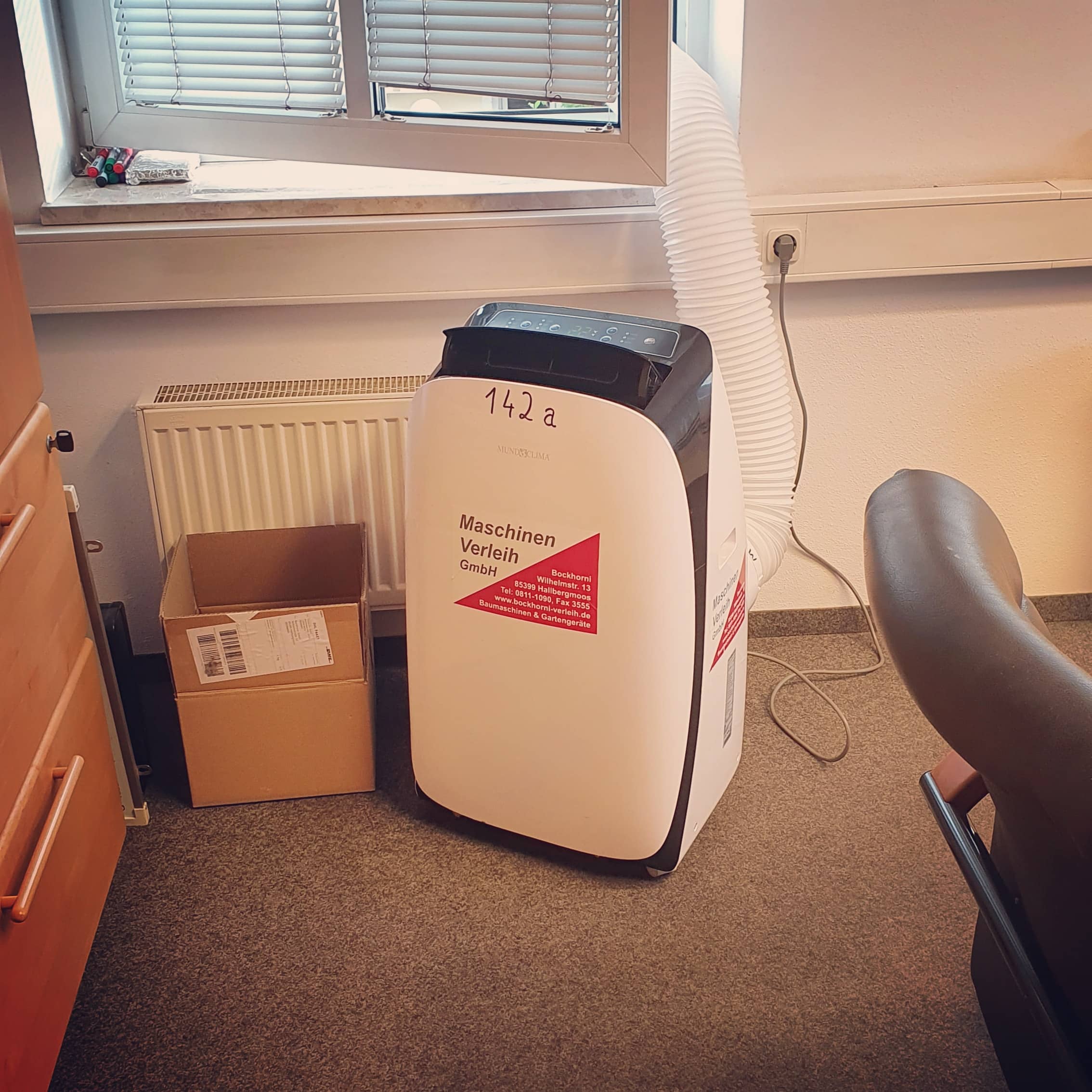 Das Klimagerät ist klein, handlich und mobil einsetzbar. Das Klimagerät kann schnell und einfach in Büroräume aufgestellt werden. Der Abluftschlauch der Klimaanlage wird einfach aus dem Fenster geführt. Das Klimagerät verfügt über eine moderne Touchpanel-Bedienung. Auf dem Touchpanel kann die Temperatur, Luftstärke und Blasrichtung eingestellt werden.